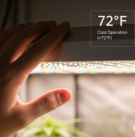 Each fixture runs at a stable low temperature, reducing heat stress on plants, easing HVAC loads, and keeping the grow room climate more consistent.